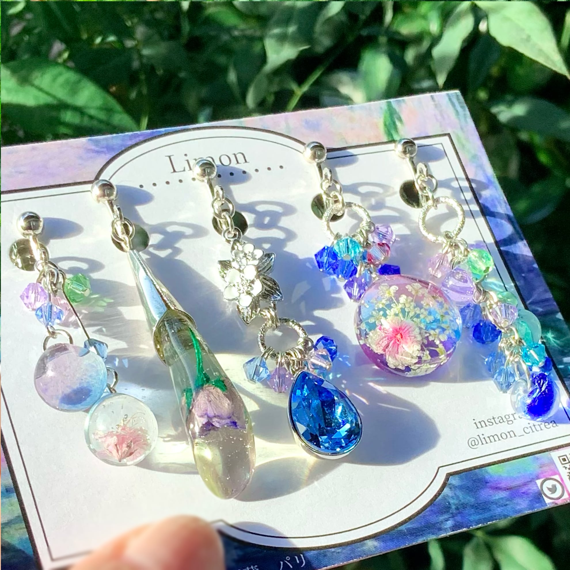睡蓮の池の絵画をモチーフに花で描いたレジンパーツから制作。