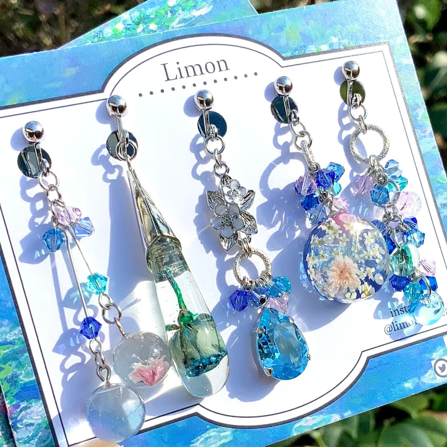睡蓮の池の絵画をモチーフに花で描いたレジンパーツから制作。