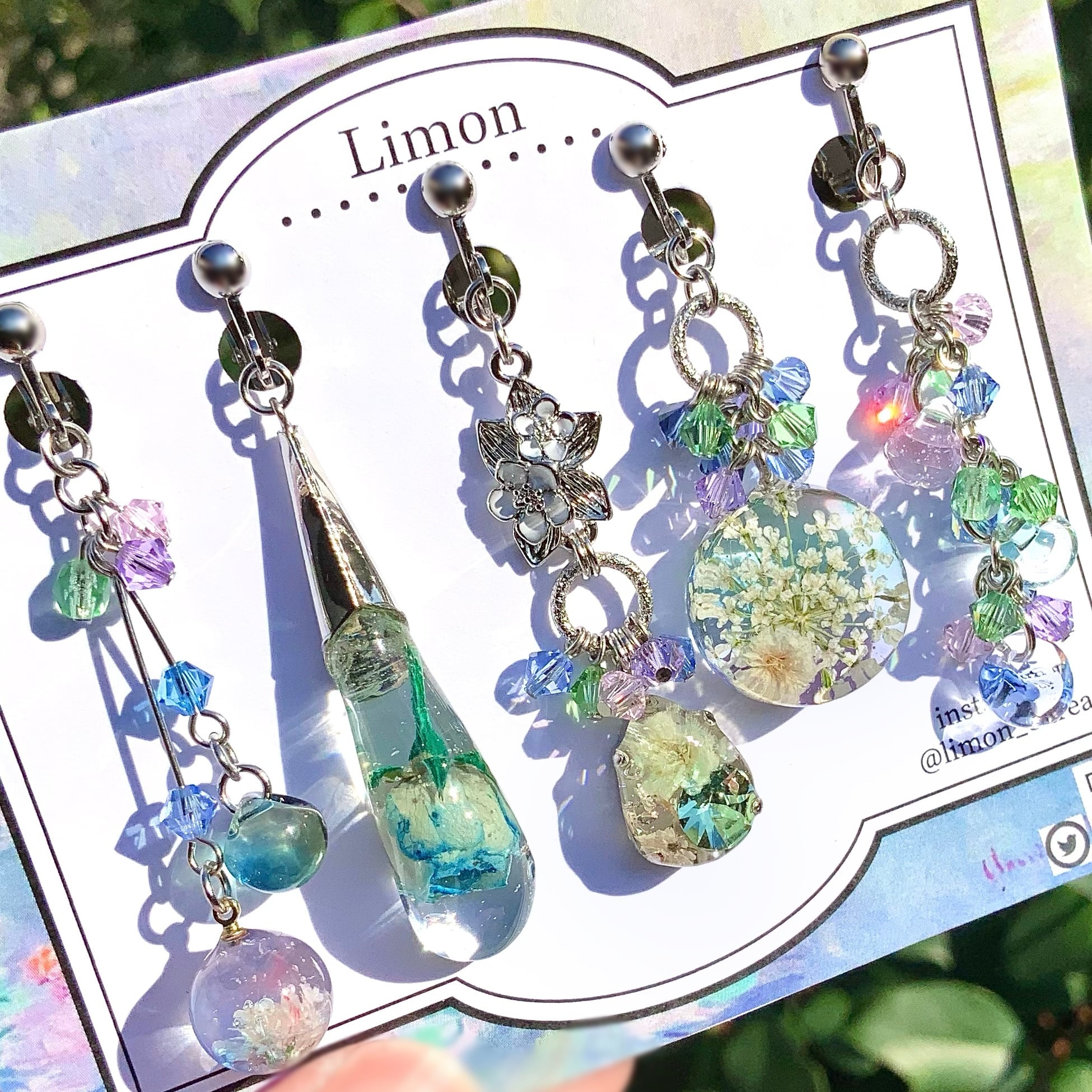 睡蓮の池の絵画をモチーフに花で描いたレジンパーツから制作。