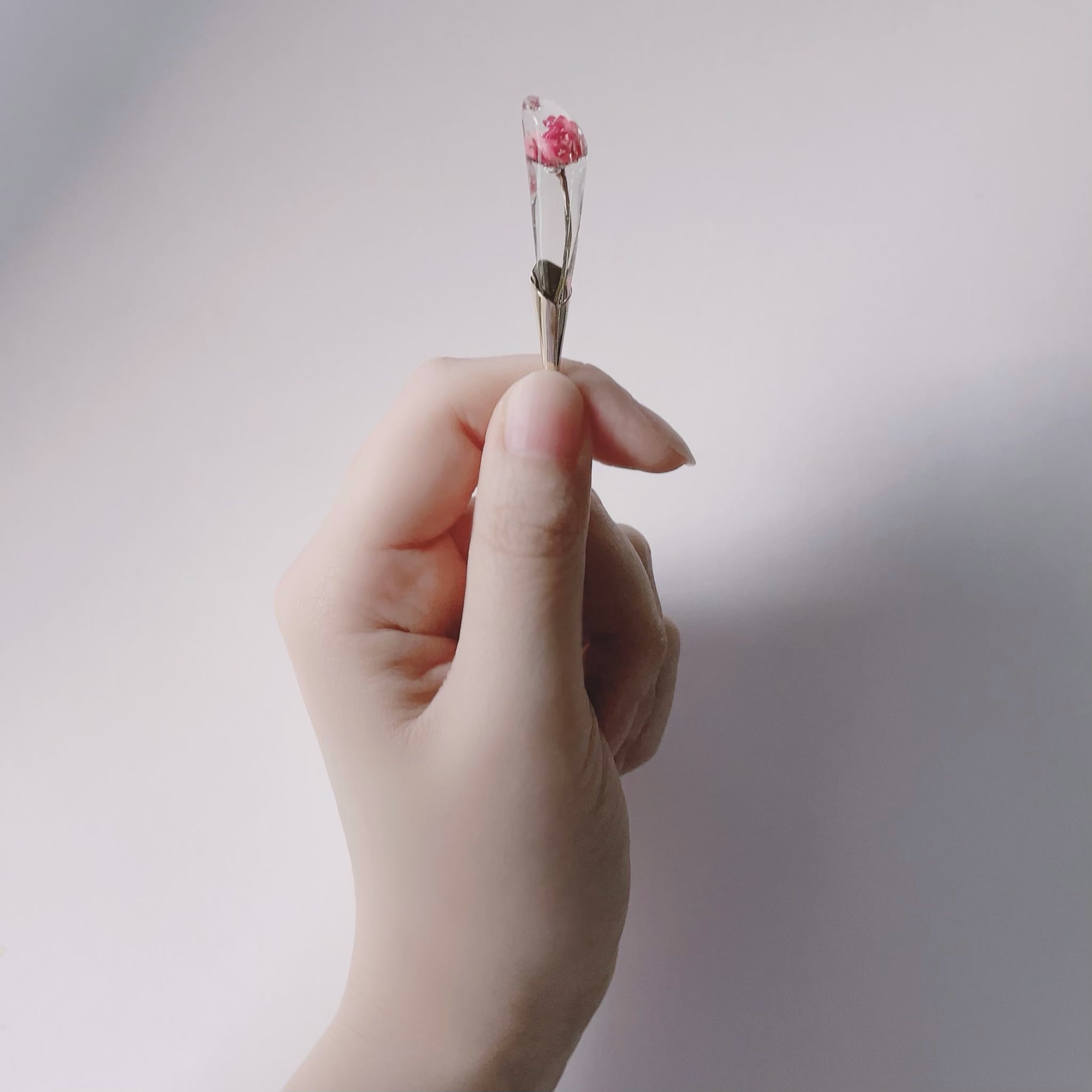 世界最小サイズの品種の薔薇を染めたものを使用。