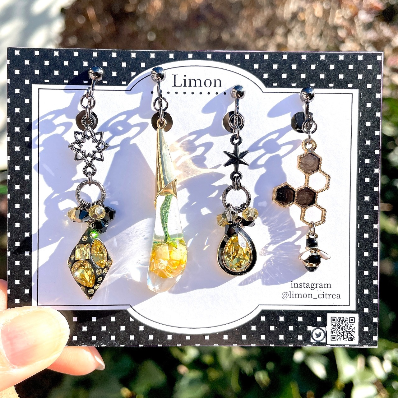 ※フックピアス、メッキイヤリング以外の金具は、黒ではなく、ゴールドカラーになります。ご了承ください。